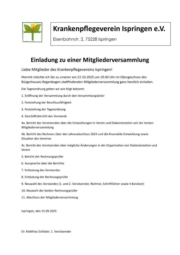 Die Mitgliederversammlung im Januar 2025 hat einen neuen 1. Vorsitzenden gewählt: